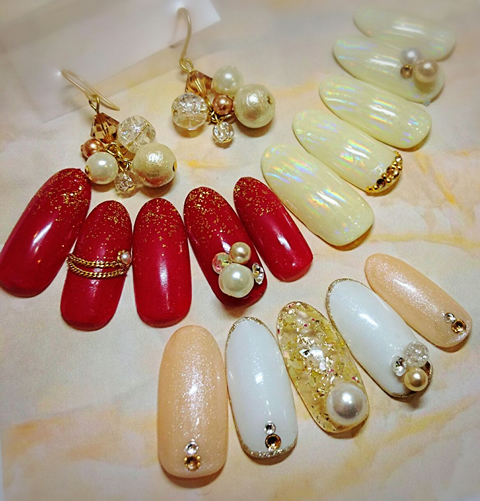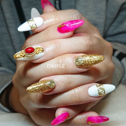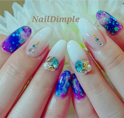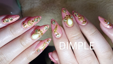 松戸にあるネイルサロン「NailDimple」のゴージャスネイルのご紹介! キラキラ華やかに!ゴージャスに仕上げたい!という方にオススネイルです☆ NailDimpleではお好みの色々なネイルデザインをご提案致します。お気軽にお申し付け下さい♪